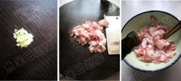材料:五花肉150克、榨菜 125克、蒜苔30克、姜适量