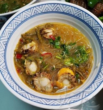 这是一碗非常有格调的酸辣粉的家常制作方法,采用鲜扇贝、酸豇豆、泡椒和红薯粉,做了个出彩的酸辣扇贝粉,好吃得紧!其实酸豇豆完全可以换成其他品种的酸菜,鲜贝肉也可以换成其他贝类、虾或者羊肉片肥牛卷儿,味道肯定都差不了,前提是食材质量有保障。