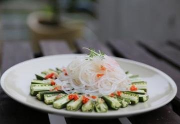 食材:秋葵、粉丝、猪油(鸭油)、鸭汤、辣椒、大蒜