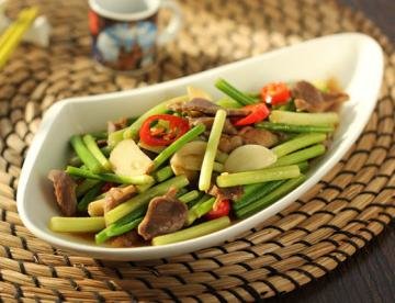 3、不要将蒜薹与鸡胗一起炒,要先炒蒜薹,炒的八成熟时再放入鸡胗,最后只需倒入碗汁大火收汁即可,避免鸡胗炒老了;