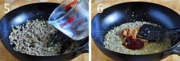 3、烧热炒锅,加入食用油润锅,下牛肉馅煸炒至水分收干,肉馅微微发焦;