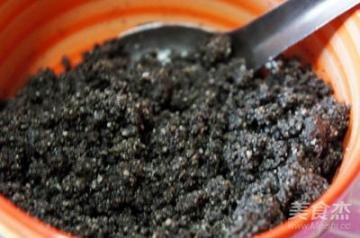 2、黑芝麻碎(为了省事可以用熟黑芝麻在料理机打碎即可)加入白糖