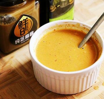 材料1:鲜8芝麻酱2大匙,鲜8香油1小匙,素蚝油(或酱油膏)1大匙,酱油1小匙,凉开水2-3大匙