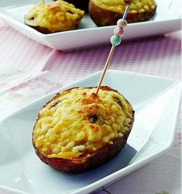 红薯这样的家常菜的做法是多种多样的,今天我选择的是烤红薯。芝士烤红薯是把奶油、黄油加进到蒸熟的红薯泥中,淡淡的奶香味,夹着颗颗的提子干,再配上烤到焦黄的芝士,口感棒极了。