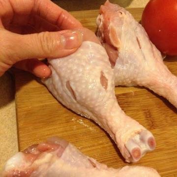 3、鸡腿用刀尖稍微划几刀,以利调味料更入味。