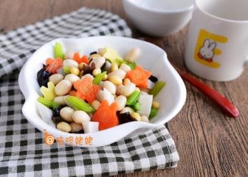 主料:花生仁 150克、黄豆 100克、莲藕 适量、芹菜 适量、胡萝卜 适量、黑木耳 少许