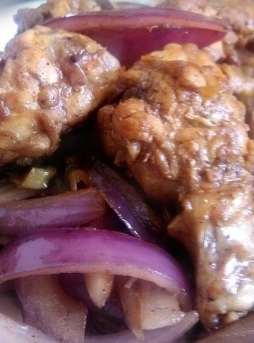 主料:紫洋葱一个、鸡小腿4只、泡椒适量