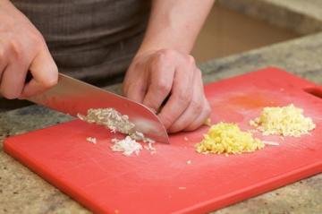 3. 将15克大蒜、15克生姜和15克小葱葱白切成细末。