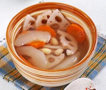 莲子秋梨莲藕汤具有养心安神,益胃健脾、养血补益功的功效。因其做法简单特别适合在家中饮用。梨中含有丰富的B族维生素,能保护心脏; 梨所含的配糖体及鞣酸等成分,能祛痰止咳,对咽喉有养护作用。所以这道莲子秋梨莲藕汤的营养价值非常丰富的,下面教给大家莲子秋梨莲藕汤的做法详细步骤讲解。