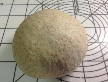 7、将面团材料混合揉至三光。 面皮材料:(可做7到8片) 高筋面粉240公克 天然酵母元种110公克(全麦高筋起种) 奶油25公克 水120CC 糖15公克 c4公克