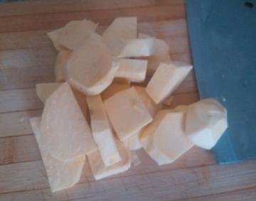 这是一款暖心又养胃的香甜红薯粥,做这粥的时候不同的红薯做出来的口味也有很大的差别,我比较喜欢用黄心红薯,这种红薯不容易煮烂,其淀粉含量很高,煮出来的粥很是香甜。而通常超市里卖的都是橙心红薯,我们老家称为南瓜番薯,这种番薯做出来的粥口感要查很多,而且很容易就煮烂,个人感觉不太适合。而这种黄心红薯,一般只有乡下农户家自种,所以我特意跑郊区找农家买了几斤。