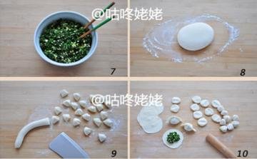 10、剂子压扁擀成饺子皮包馅,包饺子的手法随意。