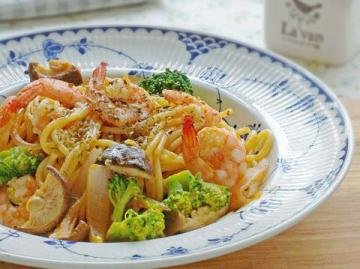 主料:意面1人份,虾仁若干,香菇数朵,西兰花数朵