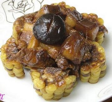 关于玉米红烧肉的做法全部介绍完了,很简单吧。煮的时候要用很小的火,慢慢炖,最后把剩余的一点汤汁收干即可出锅。装盘时可以用玉米围边,肉和香菇放中间,香而不腻,即解馋又养生。