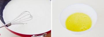 9、将熬好的糖浆趁热倒入布丁杯的底部。