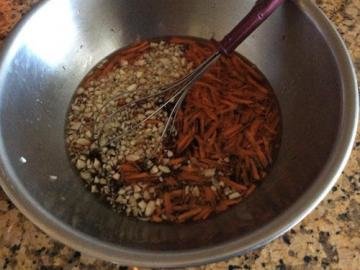10、最后加入蒜末及红萝卜丝拌匀即可。喜欢带点辣味的可以放些辣椒末。