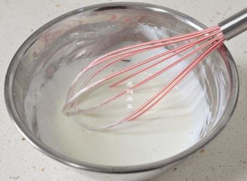 2、至用手摸着盆温热即可,不能时间长,然后趁着温热,搅拌均匀成糊状,搅拌的过程中奶酪就融化了。