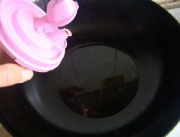 6、油锅上火,锅中加少许初榨橄榄油和香油。