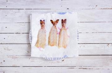 1、准备主食材:提前将明虾取出化冻,并用厨房纸巾吸干表面水分。