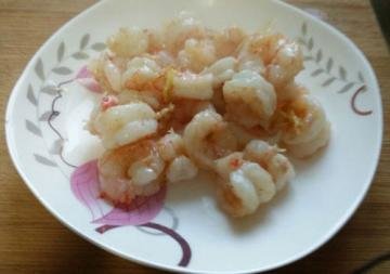 5、将虾仁与腌渍调料拌均,腌渍20分钟入味。