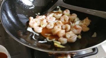 7、待虾仁变色成球状时,捞起控油装盘备用。