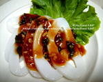 以前曾经有过几次吃不完生鱼片的经验。当时把吃剩的生鱼片在隔餐的时候拿来做红烧,做法简单,并且非常好吃。经由姜、米酒与醋来提味,不但开胃,并且一点都不腥。当然,同样的料理方法也适用于大部分的海鲜。这次在市场上看到漂亮的软丝,那就来做红烧软丝吧