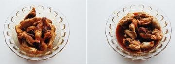6、加入冷却的鸡汤,量到鸡腿块1/3的高度,拌匀浸泡2小时以上(我浸泡了一下午);
