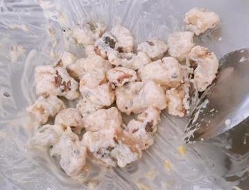 4、将鱼身与鱼肉都均匀裹上地瓜粉。