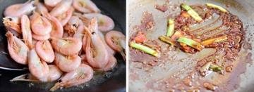 3、锅烧热,倒入比炒菜多点的食用油,倒入虾,炸制酥脆盛出备用。