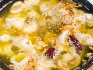 4、火力一定要维持弱火,否则蒜头会焦掉,务必注意。