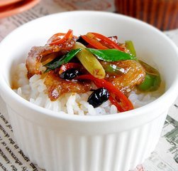配料:青、红尖辣椒几个、青蒜1根、生姜、蒜瓣各适量、食盐1茶勺、料酒1汤勺、老抽1/2汤勺、蚝油少许、自制鼓香辣酱1汤勺