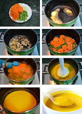 胡萝卜浓汤是用胡萝卜加上四季豆做成的一道美食,胡萝卜是一种很喜闻乐见的美味食材,它含有十分丰富的维生素和胡萝卜素,可以很好地保护眼睛,并且对人体健康也有很大的益处,可以增强人体免疫力,提高人体抵抗力,还有助于小孩子的生长发育呢。