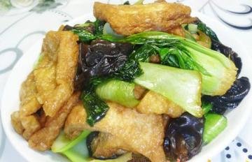 黑木耳大油方炒青菜主要取材于黑木耳、大油方、青菜这三种食材,这里的大油方是将豆腐切大块后放入油锅中炸制而成的一道美食,做起来非常的简单,相对于新鲜豆腐来说,大油方吃起来口感更好,将大油方和黑木耳、青菜搭配在一起做成的这道黑木耳大油方炒青菜吃起来美味,并且维生素含量很高,秋季食用可以提高人体免疫力,预防感冒。