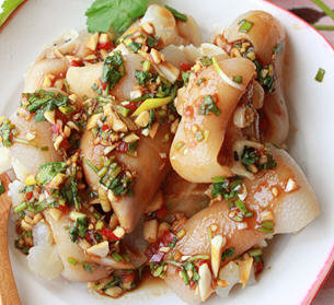 配料:调制五味沾酱用料:姜丁1大匙, 蒜丁1.5大匙, 葱丁1.5大匙, 辣椒末2大匙, 香菜末2大匙,烤香芝麻1小匙,素油3大匙 ,蕃茄酱2大匙,乌醋1大匙 ,糯米醋3大匙,d砂糖1小匙 ,香油1大匙