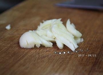 4、蒜瓣用刀背拍开来,去皮后备用。