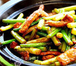 配料:大葱适量,盐1小勺,糖1小勺,鱼酿酱油1大勺,水淀粉1小碗
