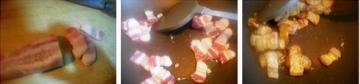 4、坐锅加少量油,油热后,下入五花肉片,小火煸至肉片微曲出油,盛出备用。