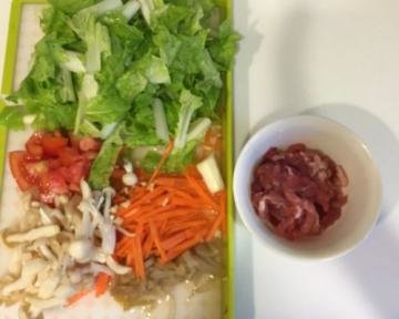 主料:白米1杯水7杯,昆布高3碗,肉糜50克,酸菜2片,小白菜2株,禧菇一大把,5公分,牛番茄1/2,
