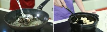 15,放入鳝鱼。调汁,蚝油,生抽,醋,胡椒粉,料酒,小半碗水,糖,倒入砂锅里,盖盖子。