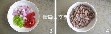 1、原材料,鸡胗、洋葱、青红尖椒。