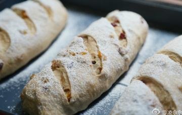 配料:红糖60克、黄油35克、蔓越莓50克、橙皮丁50克、核桃50克(烤香后切丁)