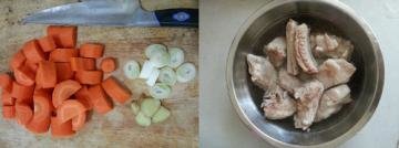 1、原料准备好,排骨、胡萝卜、葱白、姜。