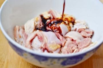 主料:鸡腿肉2块,酿造酱油2汤匙,盐1茶匙