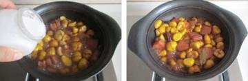 10、倒入剥好的栗子,加盖继续煮上十分钟。