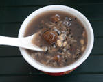 材料:糯米150克、福圆(龙眼)肉100克、米酒水2000cc、黑糖200克