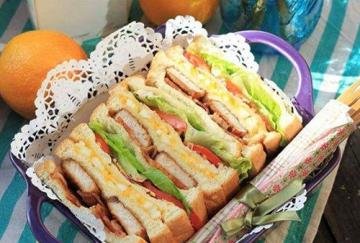 沙拉酱除了直接拿来沾蔬菜,还有多种用途,尤其适合应用在野餐料理当中。首先,“恋恋家”推荐使用里肌猪排、培根、生菜、蛋沙拉制成的三明治。猪排的部分,可以利用蜂蜜芥末沙拉酱来腌肉,不但能够软化肉质,吃起来也更入味。