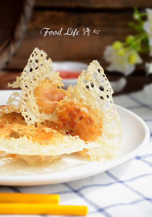 和普通煎饺相比,冰花煎饺的造型更漂亮,更有档次,也更给人食欲。它的亮点就是面粉水使煎饺网呈现透明的脆皮花纹,于是这样特殊的效果给成品带来了新意。这是当面粉水覆盖在光滑的平底锅上,产生油水分离的现象,从而出现"冰花”。