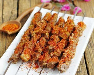材料:梅花肉适量、孜然粉、孜然粒、盐、辣椒粉、料酒、油、盐或者可以直接用市售的烤肉料