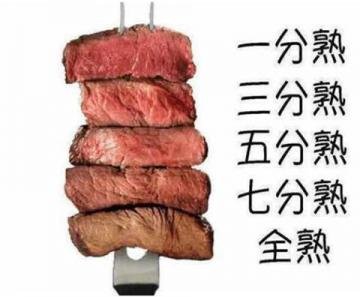 答:不同熟度的牛排熟度大概是这样: