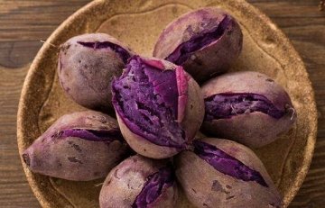 步骤一:把紫薯用清水洗干净,用削皮刀削去外皮,用刀切成薄片,放在盘子里,上锅蒸二十分钟,蒸熟以后取出,把紫薯片倒在一个大碗里,用勺子趁热压成紫薯泥,压好后,稍微放凉。